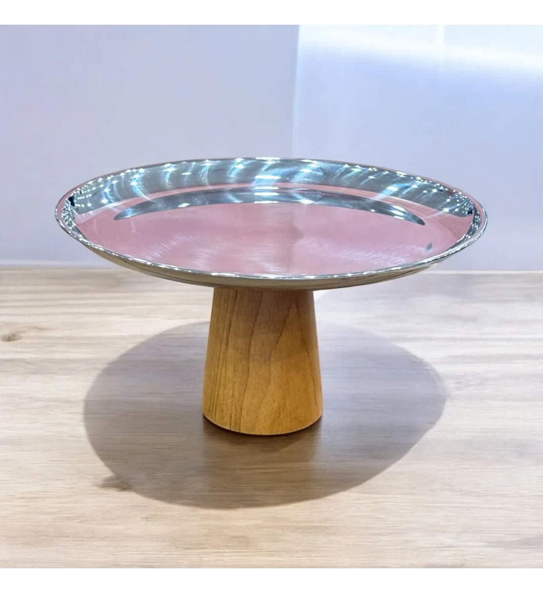 استاند تقديم معدني دائري قاعدة خشب 26×26×13سم