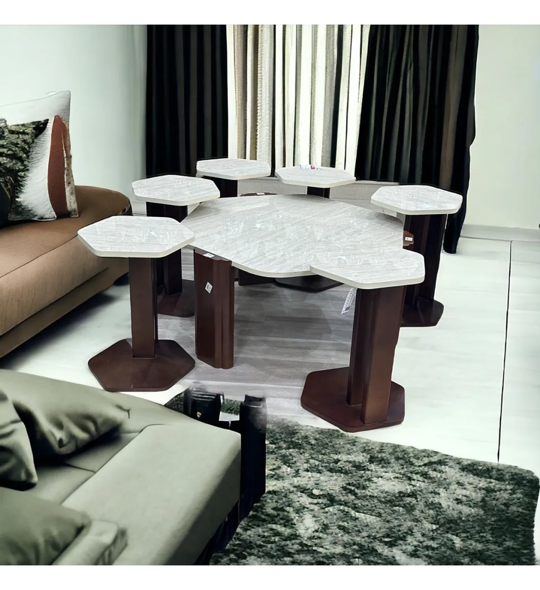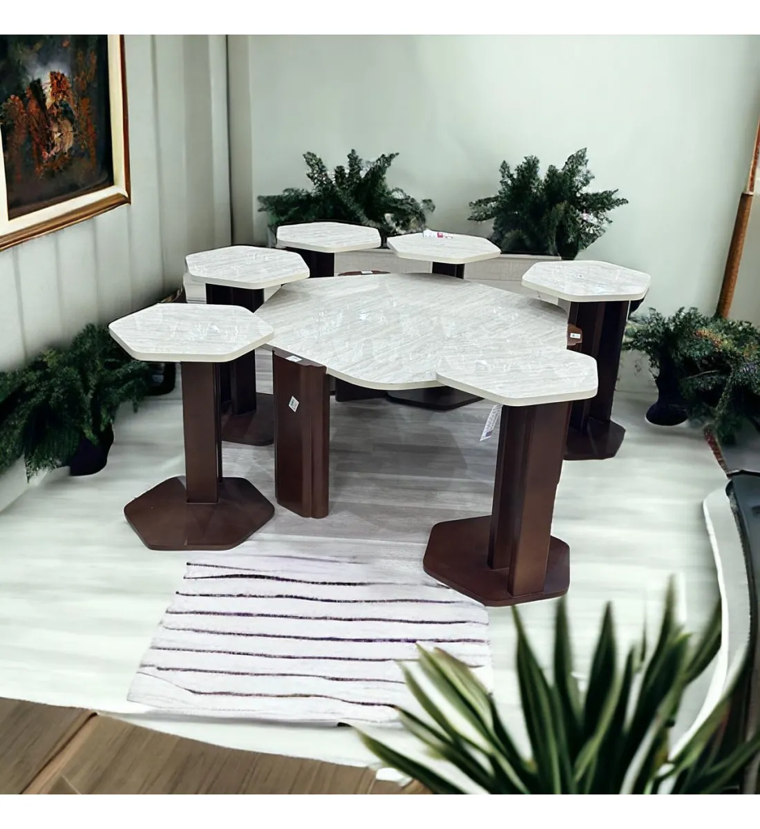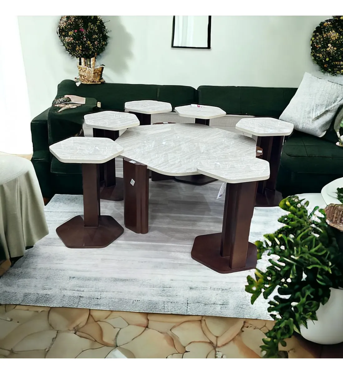 تزخر هذه المجموعة بمزاياها العديدة التي تحثّكِ على اقتنائها، تتضمن ست طاولات جانبية وواحدة بالنص كبيرة لاعتماد أى منهم وقتما تشائين مع الحفاظ على مساحتكِ.