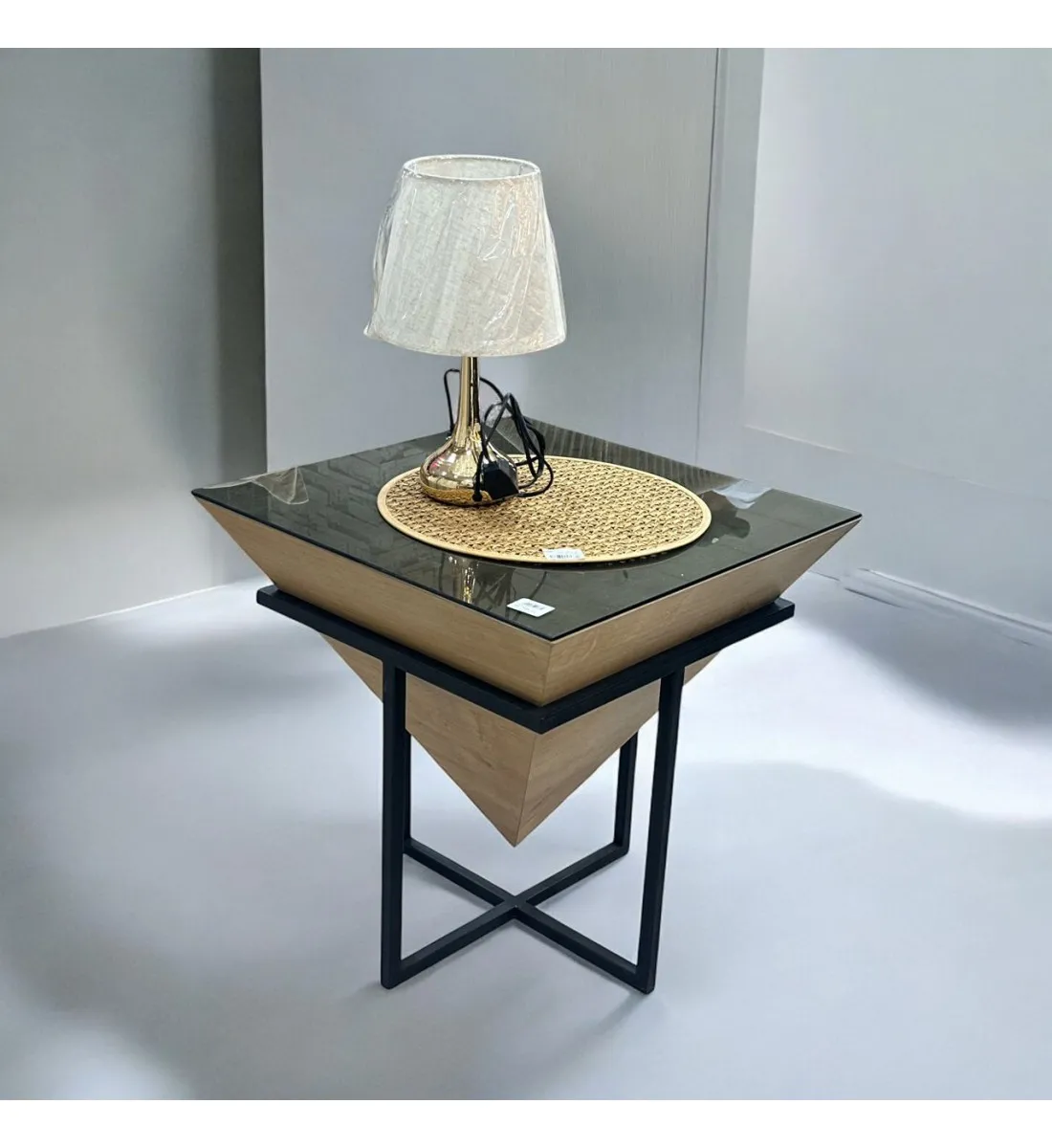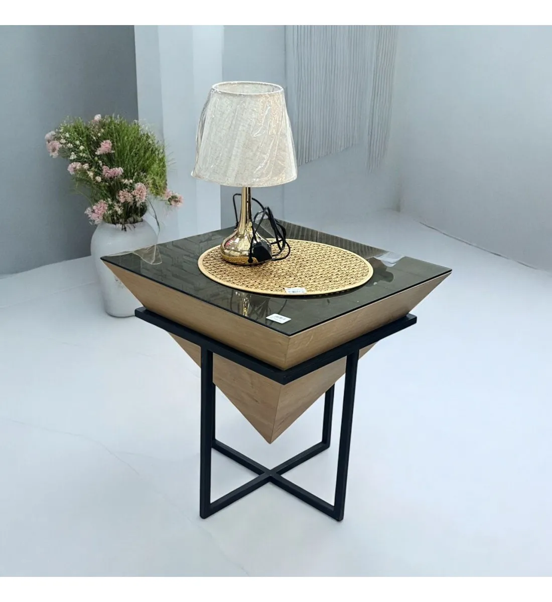 طاولة جانبية من قشرة الجوز سطح زجاج55×55×57سم