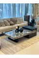 طاولة قهوة بسطح خشب ورخام 50×180×90سم(منتج تفصيل )