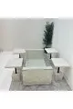 طقم طاولات يو 5قطع سطح زجاج قاعده بديل حجر خشن