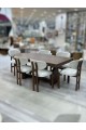 Many people seek beauty, quality, and comfort. If you're looking for a set that combines all of these elements, this walnut wood six-chair dining set will be the perfect choice for you. It features a modern and elegant design that will add a touch of elegance to your dining room.